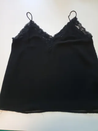 Elegante blusa con detalles de encaje. - Diseño con tirantes. - Acabado satinado. - Adorno de encaje en escote y tirantes. - es un poco elástica