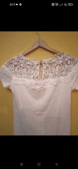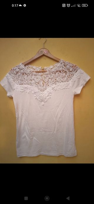 Preciosa camiseta/blusa con encaje .Está nueva ,sirve hasta la talla L completita.