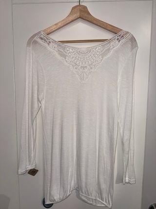 Blusa blanca manga larga con encaje
