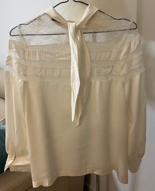 Blusa Zara cuello encaje beige