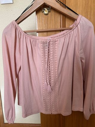 Blusa Stradivarius manga larga encaje