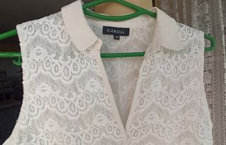CAMISA , BLUSA, CAROLL , de encaje, El Corte Inglés CAMISA , BLUSA, DE ENCAJE , CAROLL Se ajusta como un guante. Cremallera en el lateral que cierra ajustándose al cuerpo. Talla 40 De sisa a sisa 45 cm De largo 60 cm Entrega en mano, no envío #camisa#blusa#camisamujer#blusamujer#camisablanca#blusablanca#caroll#casual#