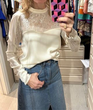Blusa Massimo Dutti Seda Encaje Beige Negra