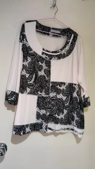 Blusa Talla Grande XXXL Encaje Negro Blanco