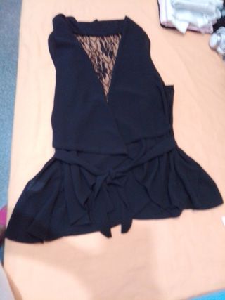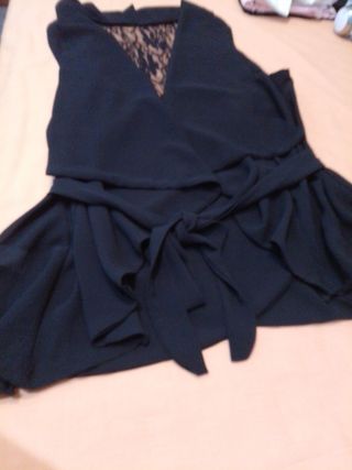 Blusa top de encaje, negra. Goma en la cintura. Talla única, estira. Se puede poner al hombro, tiene goma en la parte superior también. Sin estrenar.