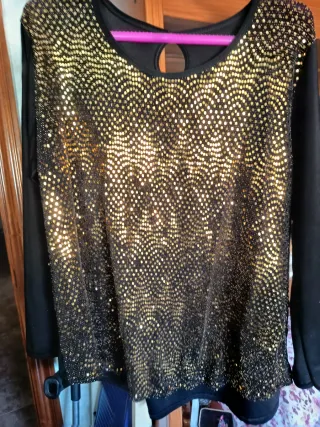 Blusón fiesta lentejuelas oro y negro talla 44,46