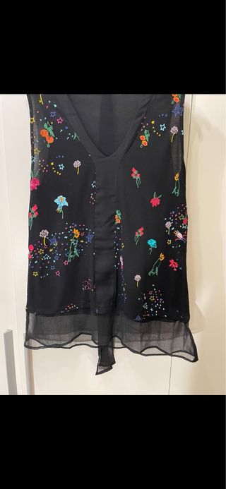 Blusa Desigual con un vibrante estampado floral y detalles en el cuello. - Diseño con tirantes. - Cuello adornado con abalorios. - Corte holgado y favorecedor. Muy bien estado! Hago descuento comprando varios artículos en un mismo envío.