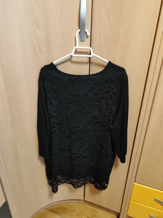 Elegante blusa negra con un delicado detalle de encaje. - Diseño con manga 3/4 - Acabado con encaje