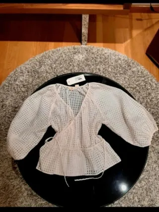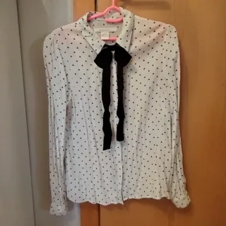 Blusa de Stradivarius con un diseño elegante y moderno en la talla M. En perfecto estado. - Tejido ligero con pequeños topos. - Cuello con lazada. - Manga larga.