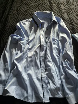 Preciosa blusa de polo en colores blanco y azul marino. Es una prenda elegante y cómoda, ideal para cualquier ocasión. - Tiene un diseño de cuello clásico con detalles en azul marino. - Las mangas son tres cuartos. - El corte es recto y favorecedor. - Da talla 40 porque se estira.