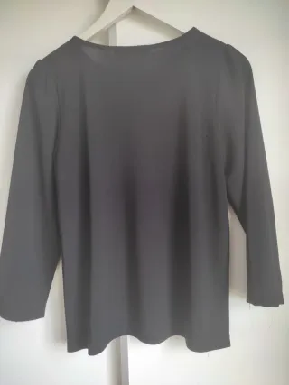 Preciosa blusa de la marca River, en color negro y talla M (38/10). Es una prenda elegante y ligera, ideal para cualquier ocasión. - Tiene un diseño floral en la parte delantera. - Manga corta. - Cierre de botones.