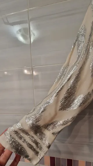 Blusa fiesta beige y plateada