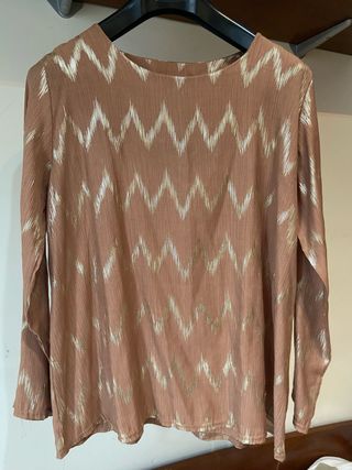 Blusa marrón y dorada con estampado zig-zag