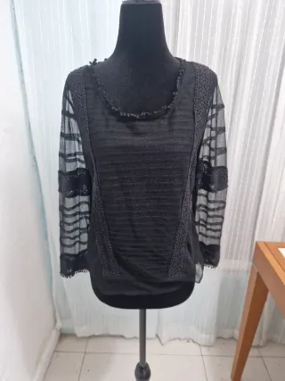 Blusa negra Caroll encaje talla M