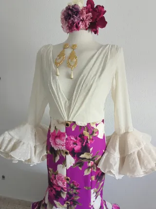 Traje de flamenca simula falda y blusa.