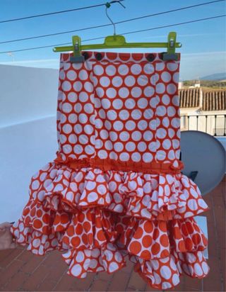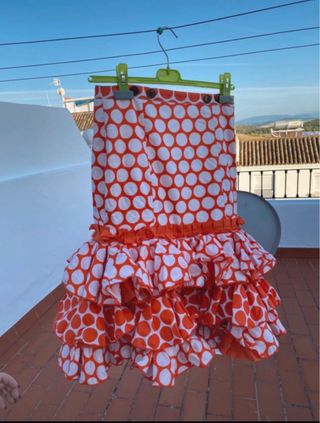 Falda flamenca naranja lunares blancos
