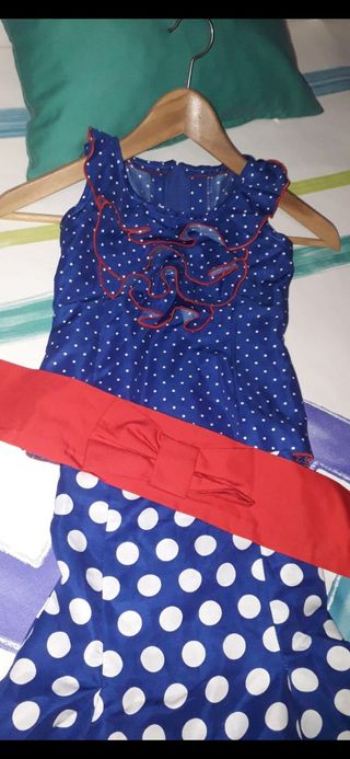 traje de lunares de tres pieza, flada corpiño y blusa rociera mangas largas es clasicoy alavés moderno talla 42, por solo 140 solo recojida