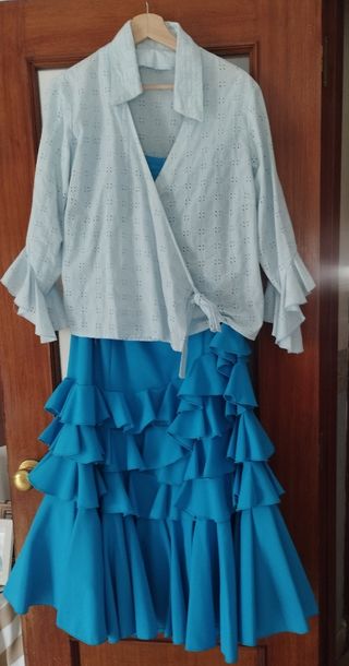 falda y blusa de flamenca en colores celeste y turquesa,si estáis interesadas os puedo enviar medidas.
