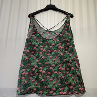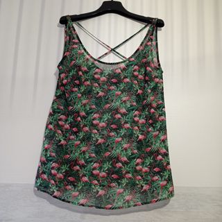 Bonita blusa con estampado de flamencos. Talla M , también L - Diseño llamativo con flamencos en color rosa. - Base de la blusa en color negro. - Mangas largas con detalle. - Cuello camisero.