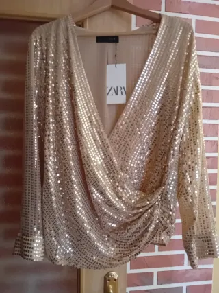 Blusa Zara Lentejuelas Doradas