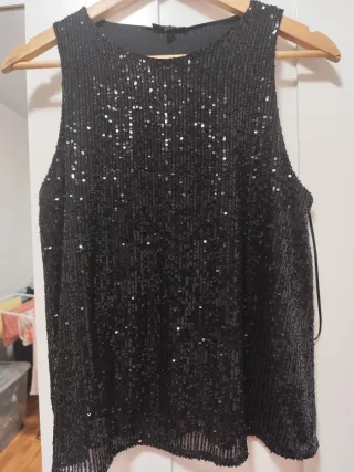 Blusa Zara Negra con Lentejuelas