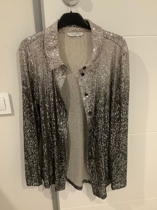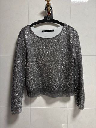 Blusa Zara lentejuelas plateadas