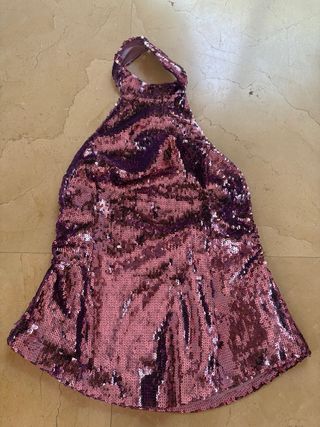Preciosa blusa de lentejuelas de Zara, ideal para una noche especial. Es de color morado y tiene un diseño halter. - Talla única - Diseño elegante y brillante - Perfecto estado