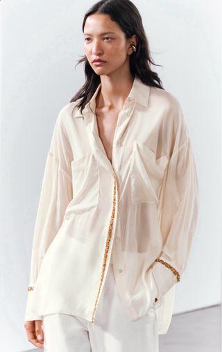 Blusa Marfil gasa Zara. Flores y lentejuelas.