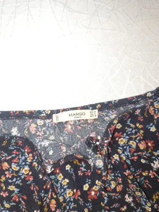 Blusa de Mango con un diseño delicado y elegante. - Manga corta abullonada. - Escote en V. - Detalle de bordados florales. - Corte peplum.