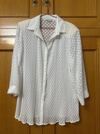 Blusa de tejido transparente. - Diseño de manga larga. - Cuello camisero. - Cierre de botones.