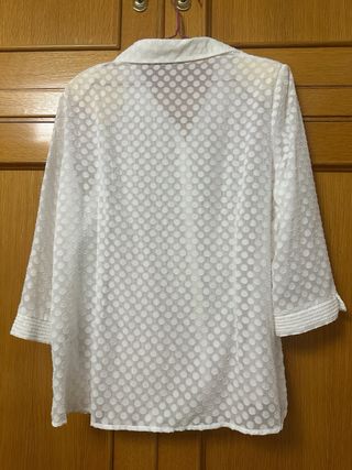 Elegante blusa de la marca Antea Plus. - Con hombreras - Diseño con lunares y textura. - Cuello camisero. - Cierre de botones. - Manga 3/4.