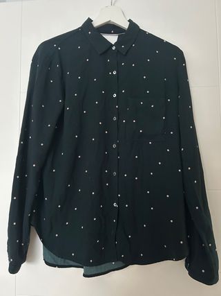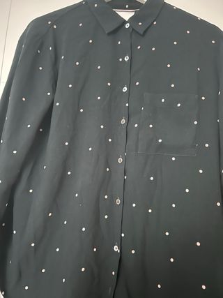 Blusa de manga larga con un diseño de lunares. le falta el ultimo boton - Cuello camisero. - Cierre de botones. - Bolsillo en el pecho.