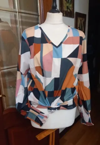 Blusa con un estampado geométrico vibrante y moderno. - Diseño de manga larga. - Corte favorecedor. - Tejido ligero y cómodo.