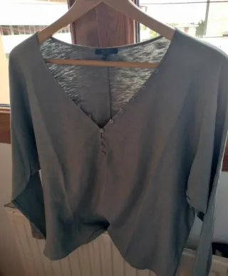 Blusa de manga larga con cuello en V y cierre de botones. - Diseño liso. - Tejido suave al tacto. -Precio negociable💰 -Preguntar sin compromiso✅ -Envío rápido y seguro📦