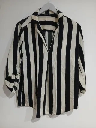 Blusa de Stradivarius con un diseño de rayas verticales. - Manga larga con puños. - Cuello camisero. - Diseño de rayas en blanco y negro.