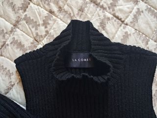 2 piezas: jersey negro con diseño acanalado y blusa de punto acanalado negra de cuello alto. - Tejido suave y cómodo. - Mangas largas y sin mangas. - Dobladillo recto.