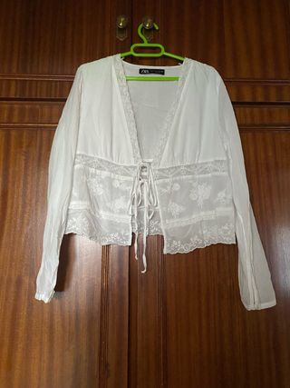 Blusa Zara con lazo y encaje blanco