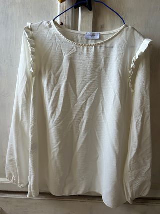 Blusa blanca de manga larga con pequeño volante en los hombros talla única. - Volantes en los hombros. - Puños elásticos en las mangas.