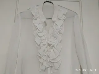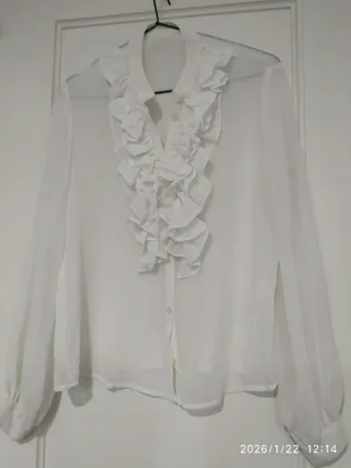Blusa blanca manga larga con volantes