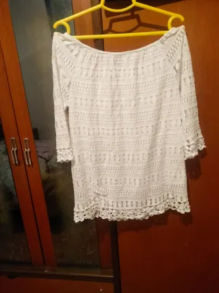 Blusa blanca encaje hombros descubiertos