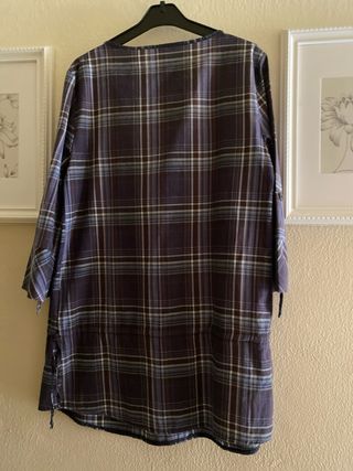 Blusa de manga larga con estampado de cuadros. - Cuello redondo. - Cierre de botones en la parte delantera. - Mangas con vuelta. - Detalle de pliegues en la parte superior.