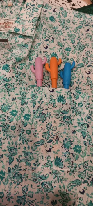Blusa de manga corta con un estampado floral vibrante. Perfecta para un look casual y fresco. - Diseño de flores en tonos verdes y blancos. - Cuello camisero. - Cierre de botones. - Bolsillo superior - 50% poliéster 50% algodón