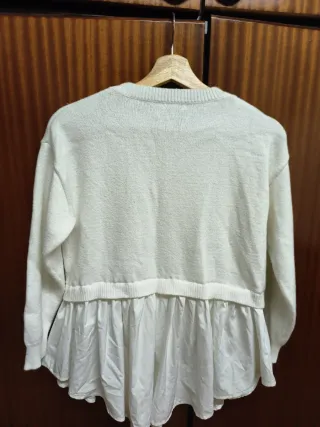 Blusa de manga larga con un diseño de dos piezas. - Parte superior de punto texturizado. - Parte inferior tipo camisa con botones. - Corte peplum.