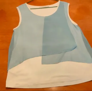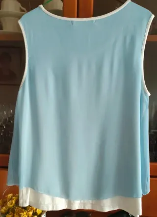 Blusa sin mangas con un diseño de capas superpuestas. - Capa superior en tejido ligero azul. - Base en color blanco. -Algodón y viscosa