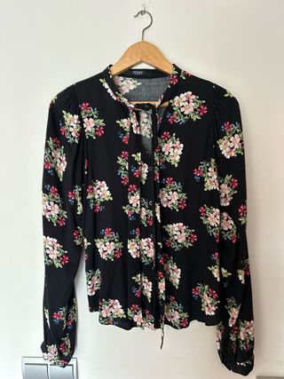 Blusa de manga larga con un bonito estampado floral. -Nueva sin estrenar - Diseño con escote en V y cordones. - Bajo asimétrico.