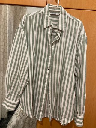 Camisa de rayas verticales de Stradivarius. - Diseño clásico con cuello. - Cierre de botones. - Mangas largas con puños.