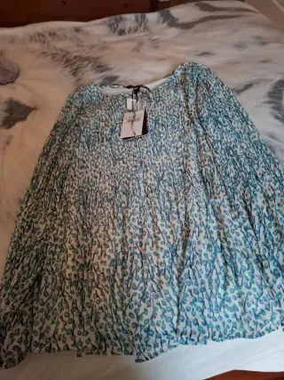 Blusa elegante de manga larga. -Nueva con la etiqueta - Diseño con cuello redondo. - Cierre en la espalda con botón. - Tejido ligero y con caída. -Ideal para regalar estas Navidades