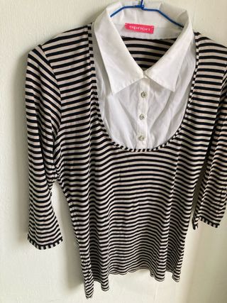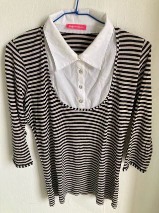 Blusa a rayas con cuello blanco