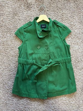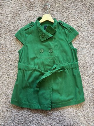 Blusa de manga corta en color verde de la marca Blanco. - Diseño tipo gabardina cruzada. - Cinturón para anudar a la cintura. - Cuello con solapa y botones decorativos.