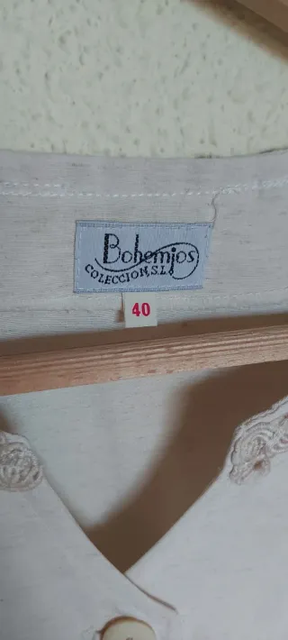 Elegante blusa de la marca Yolan. - Diseño con detalles de pedrería y encaje en el escote. - Manga larga. - Tejido ligero y fluido. - Cremallera lateral